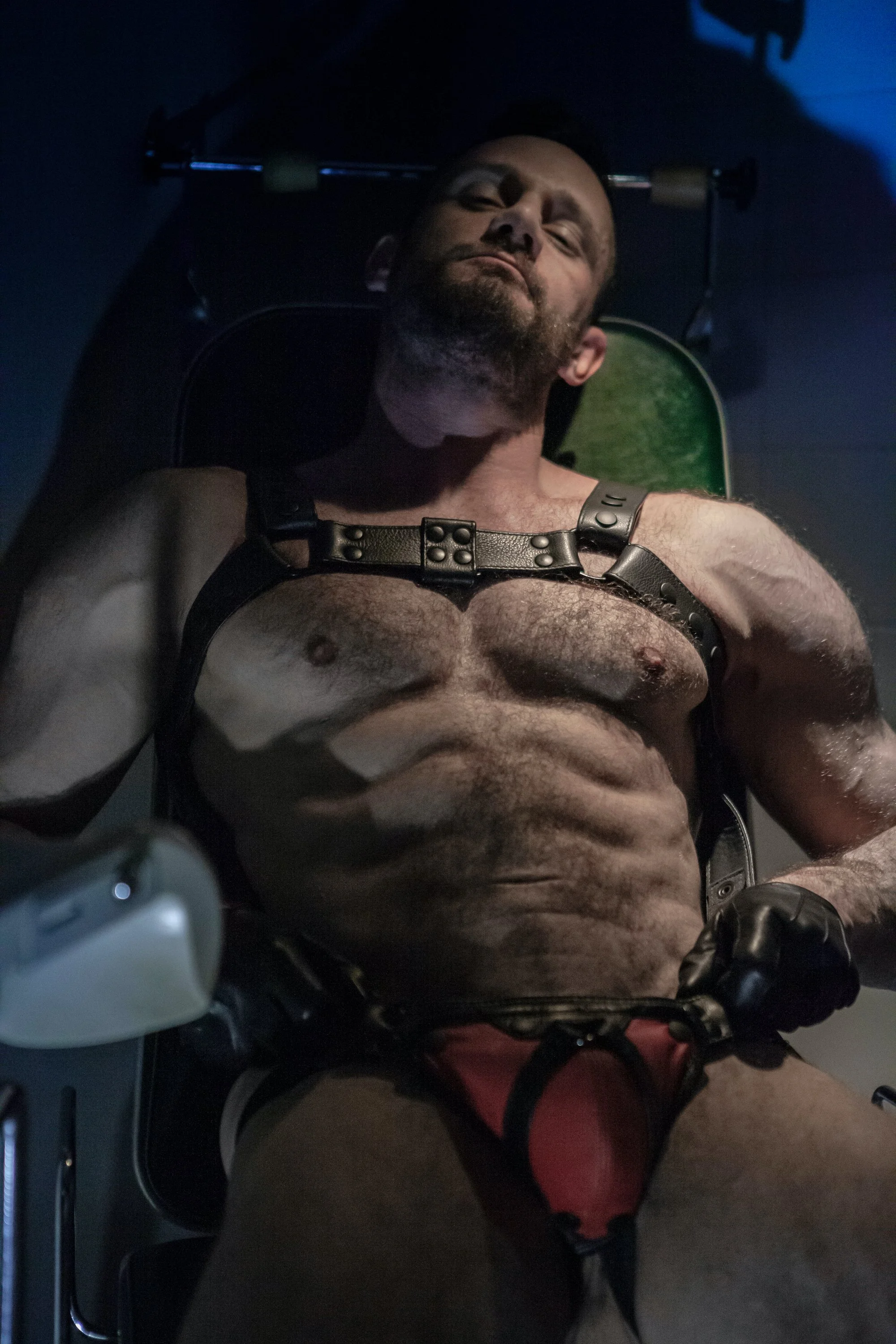GWF: Your leather portraits feel both powerful and intimate. What atmosphere or emotion are you aiming to capture in these images?